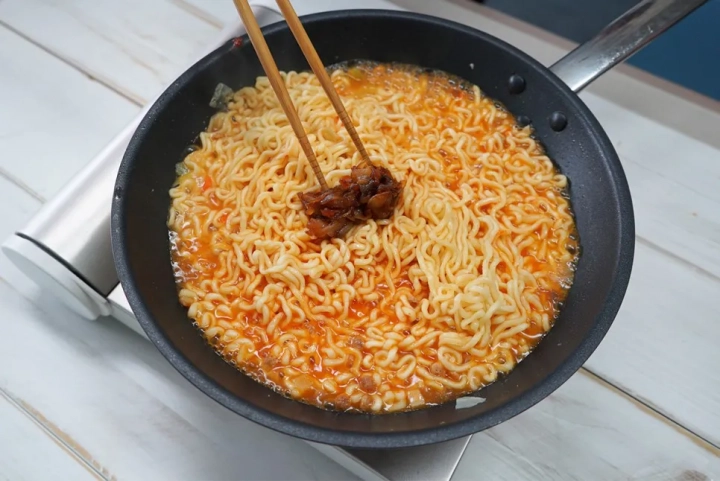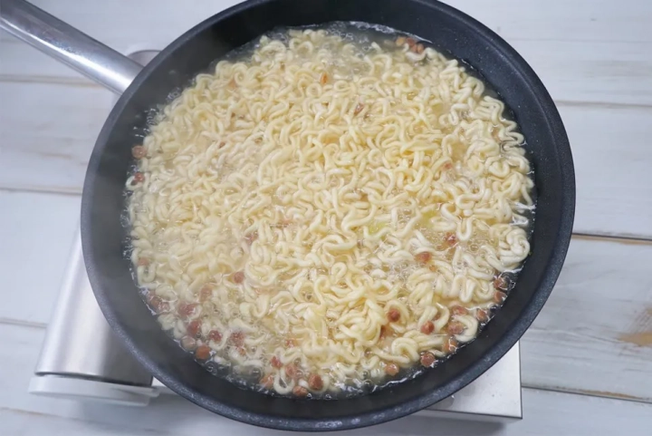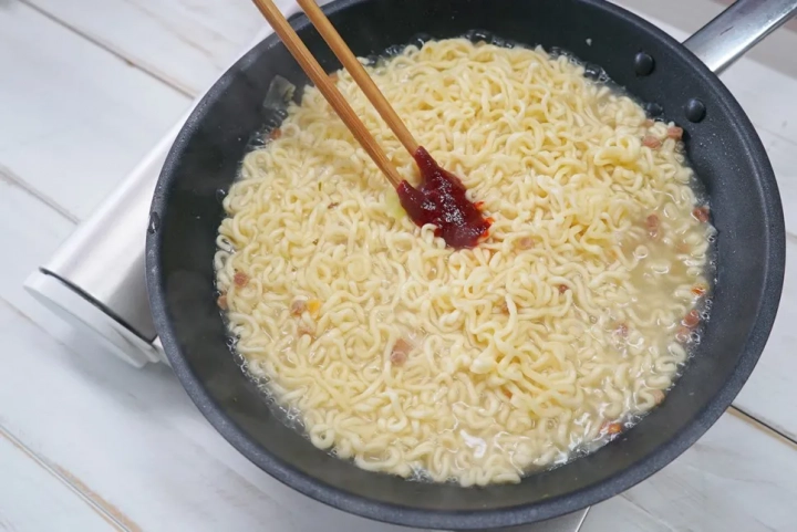 물과 건더기 스프를 넣고 물이 끓어오르면