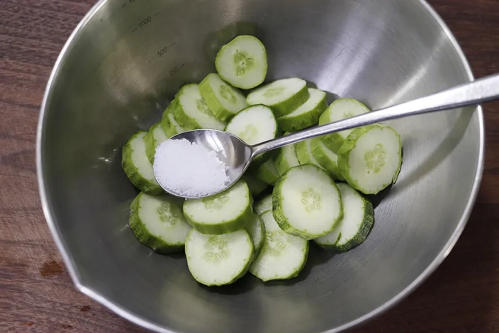 소금 1큰술을 더해 10분 정도 절여주세요.