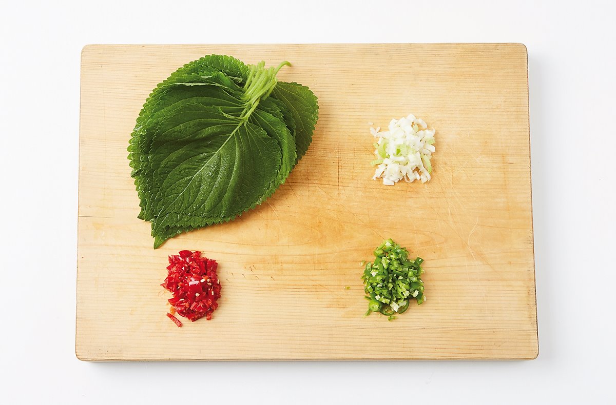 깻잎은 깨끗하게 씻어 준비하고 대파, 고추는 잘게 다져주세요.