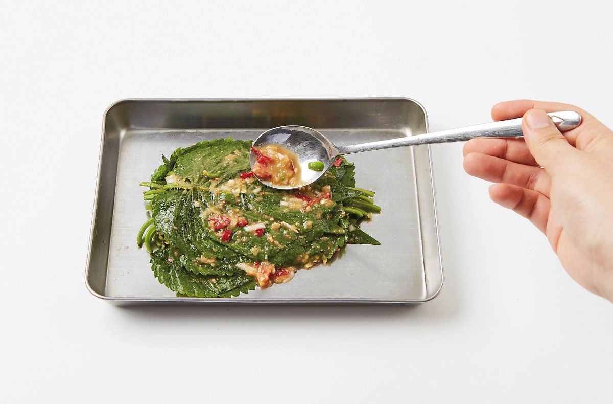 깻잎에 양념을 켜켜이 발라주면 완성~