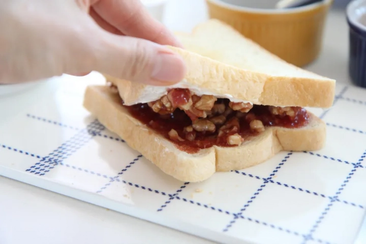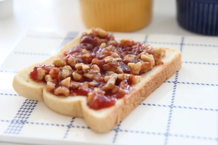 호두딸기잼을 식빵 한쪽면에 취향껏 듬뿍 발라주세요.
