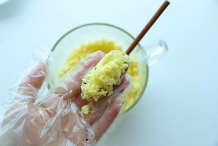 촉촉한 스크램블 듬뿍 올린, 계란유부초밥