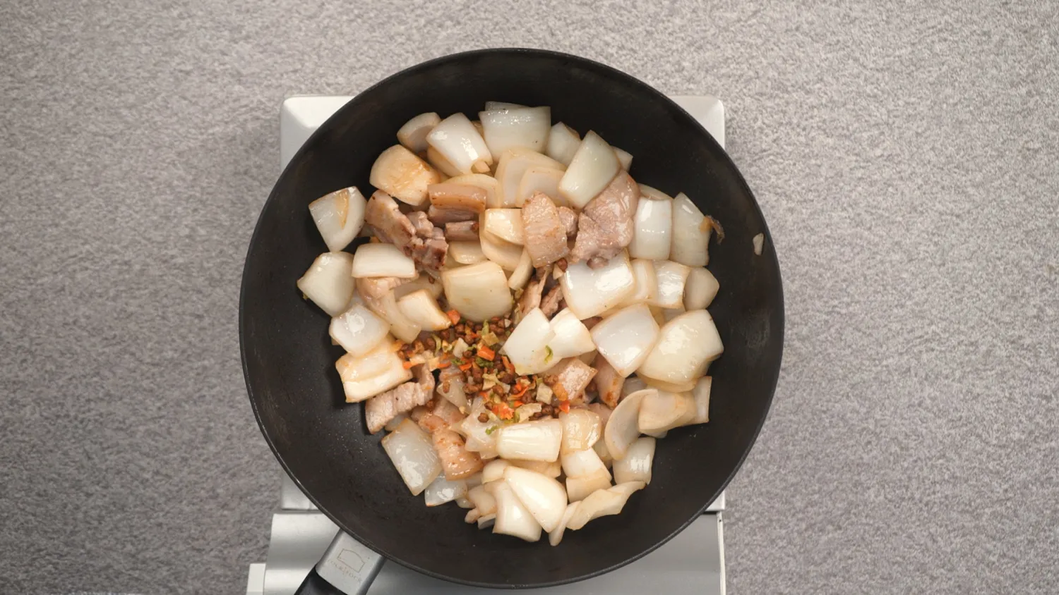 양파와 돼지고기는 굵게 썰어주세요.