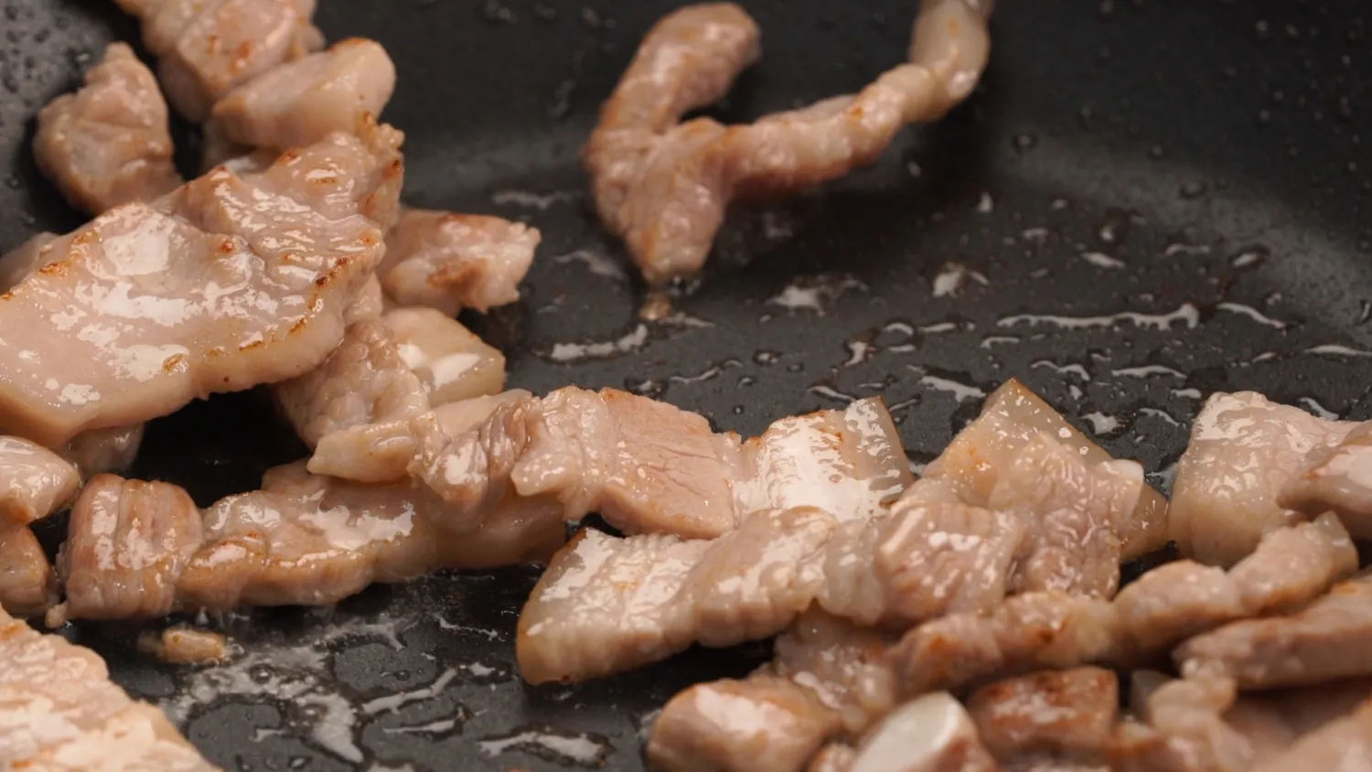 팬에 올리브유를 두르고 삼겹살을 볶아주세요.