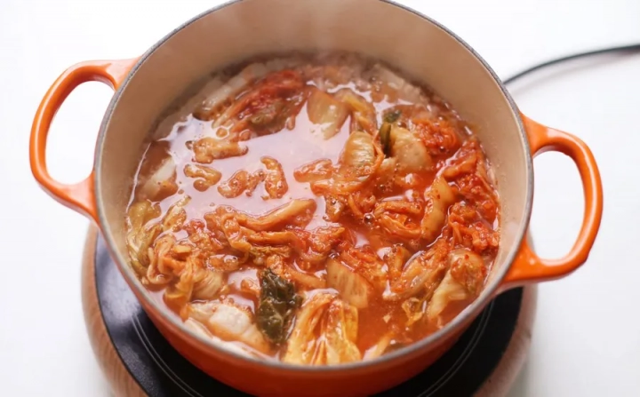 중약불로 김치가 물렁물렁할 정도로 푹 끓여주세요.