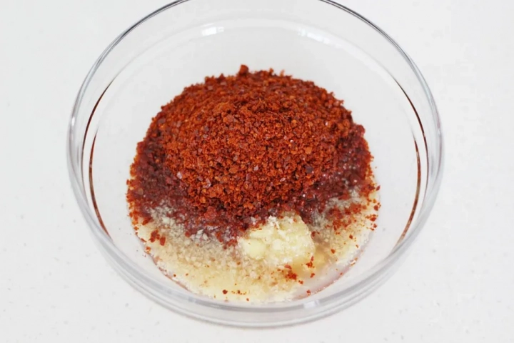 [양념재료]: 고춧가루 1/3종이컵, 액젓 4큰술,