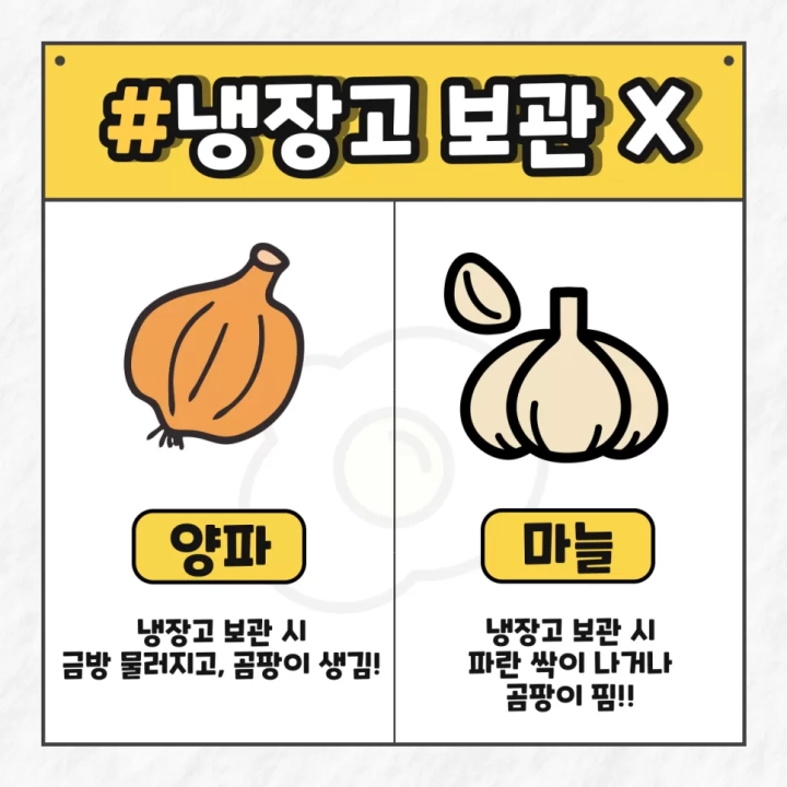 양파는 건조하고 서늘한 곳에 보관해야 한다고 하는데요. 냉장고에 보관하면 양파의 수분때문에 금세 물러지고 곰팡이가 생길수 있다고 합니다. 양파는 신선하고 건조한 곳에 보관하되 주의할 점은 양파와 감자는 꼭 분리해서 보관해야 한다고 합니다. 함께 보관하면 둘 다 바로 썩게 된다고 합니다.