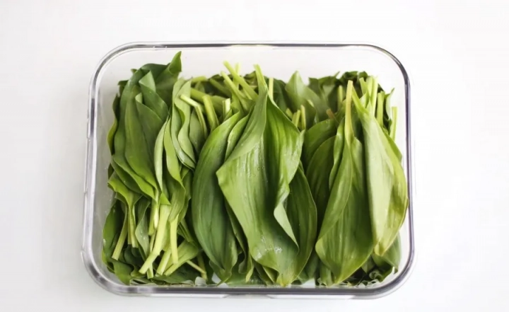 명이나물을 밀폐용기에 차곡차곡 담아주세요.