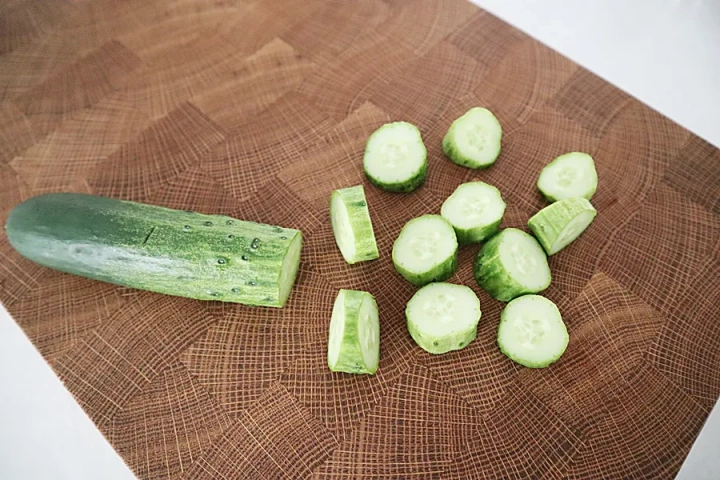 물기를 제거하고 적당한 두께로 썰어주세요.