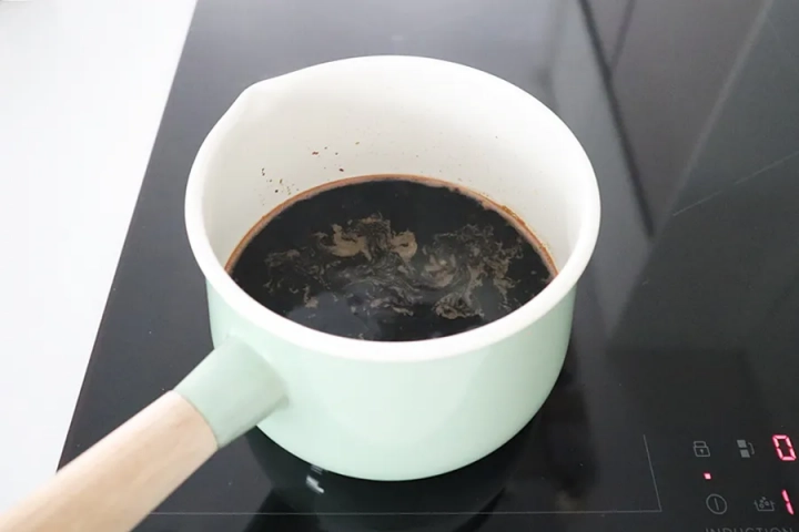 식초를 넣어주고 다시 끓어오르면 불을 꺼주세요.