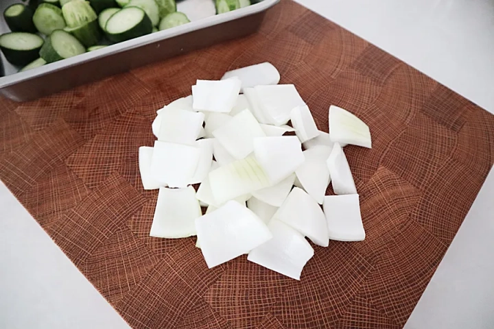 양파는 오이와 비슷한 크기로 잘라주세요.