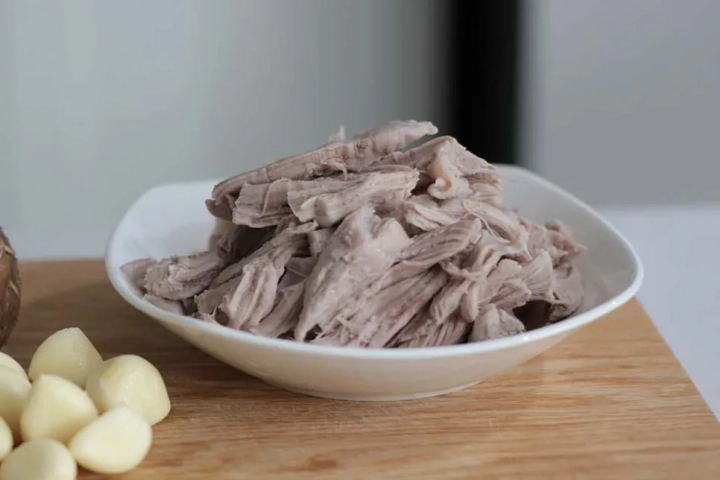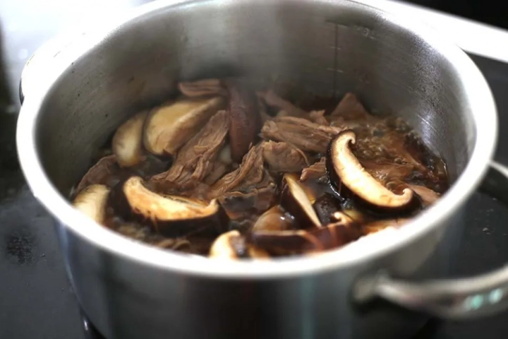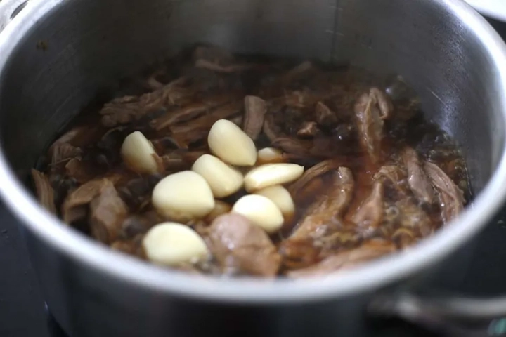 냄비에 찢은 고기를 담고 물을 고기가 잠길 만큼만 부어주세요.