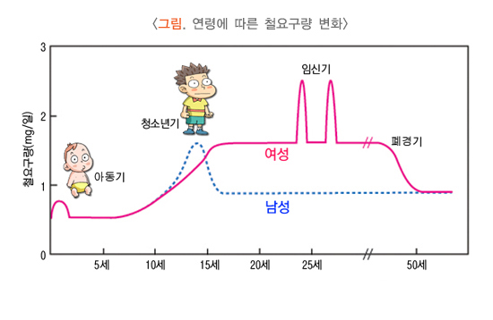또한 여자 아이들은 월경을 시작하면 매달 월경으로 철분이 소실되므로 다음과 같이 빈혈의 위험요인이 높은 여자아이와 여성은 빈혈 검사와 적절한 경과관찰이 필요합니다.
