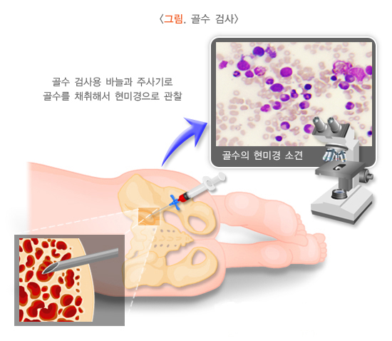 골반뼈와 같은 큰 뼈에서 골수를 채취하고 채취된 골수는 정맥을 통하여 수혈의 형태로 주어지게 됩니다. 이식을 위한 조혈모세포는 환자와 맞는 제대혈, 환자의 가족이 제공하는 골수, 또는 환자와 맞는 타인의 골수로부터 얻을 수 있습니다. 이식된 조혈모세포는 골수 내에서 성숙된 혈액세포로 분화합니다.