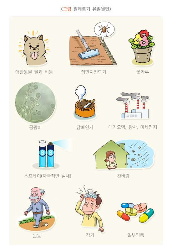 알레르기 질환의 종류에 따라서 치료는 다를 수 있지만, 공통적으로는 원인 항원에 노출되는 것을 피하거나 원인 항원을 줄여주는 방법이 원칙입니다.