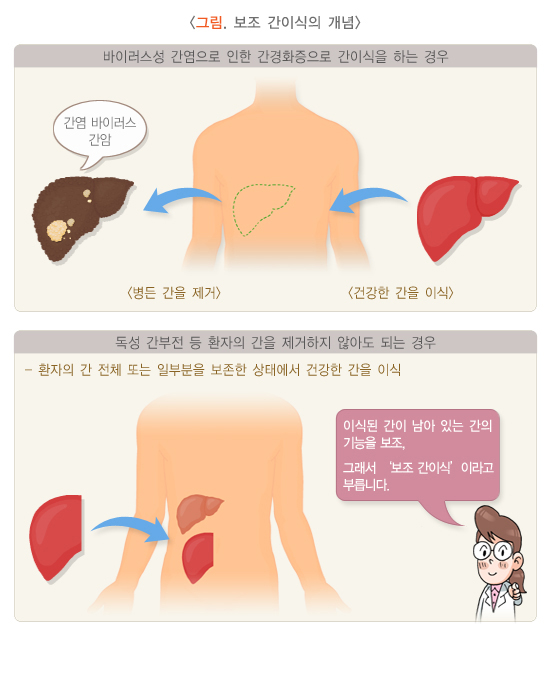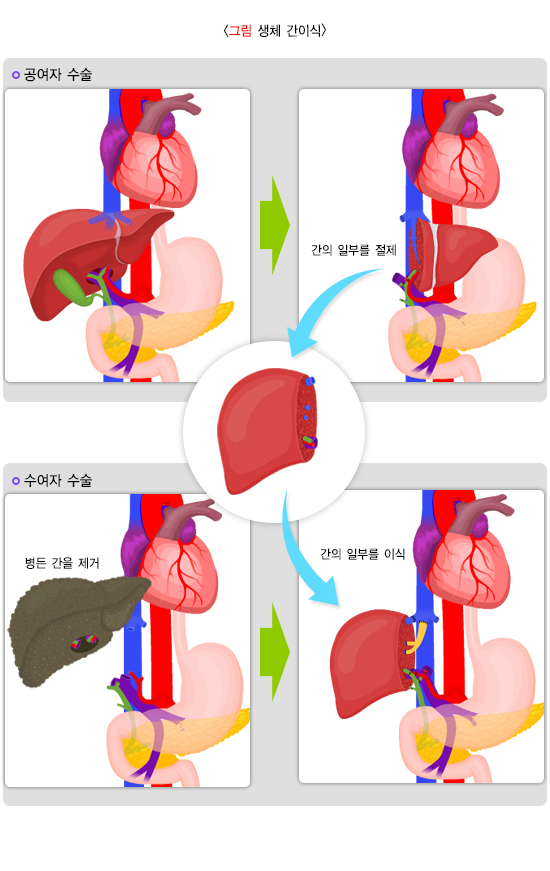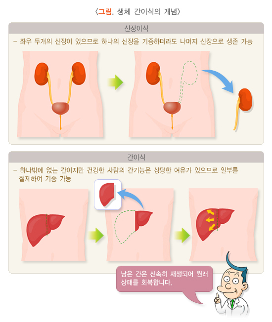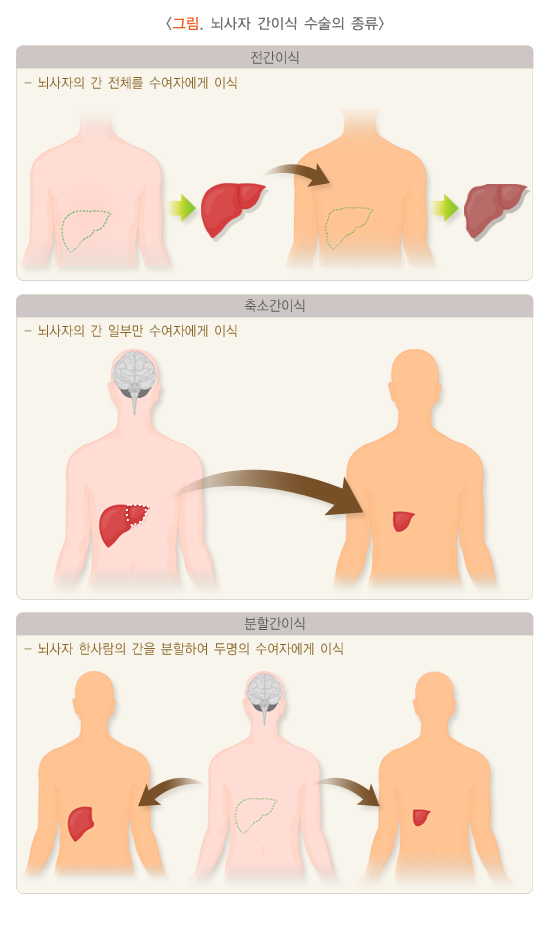 생체 간이식과 뇌사자 전간이식은 각각의 장단점이 있습니다.