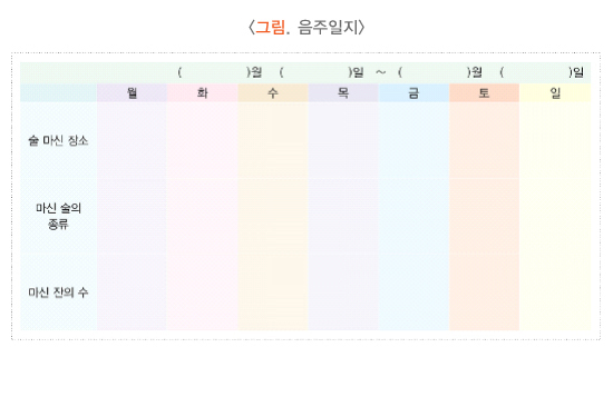 • 목표를 달성할 때까지 1주일간의 음주 일지를 기록해 봅니다.