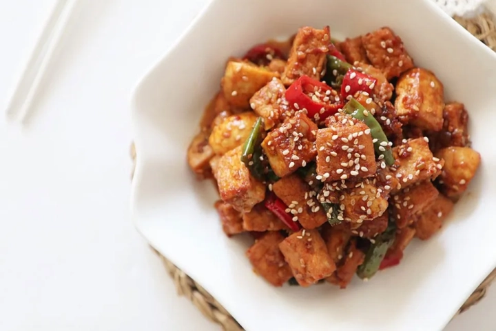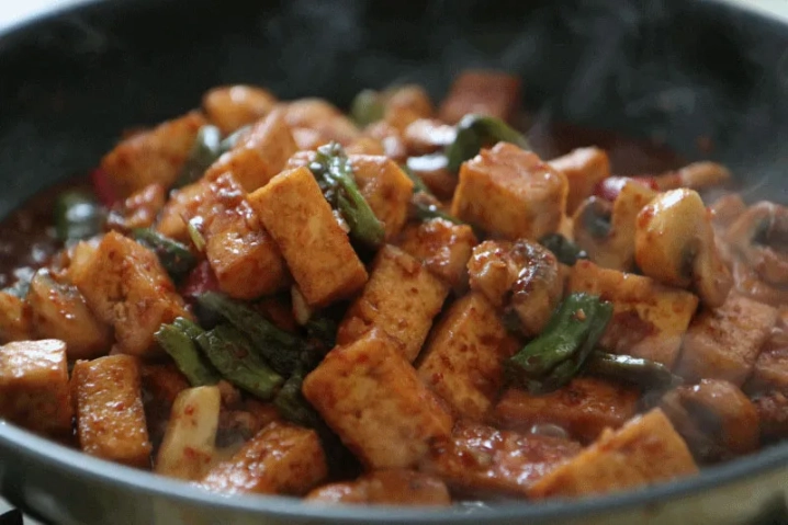 두부를 쫄깃하게 구워 양념으로 볶아주는