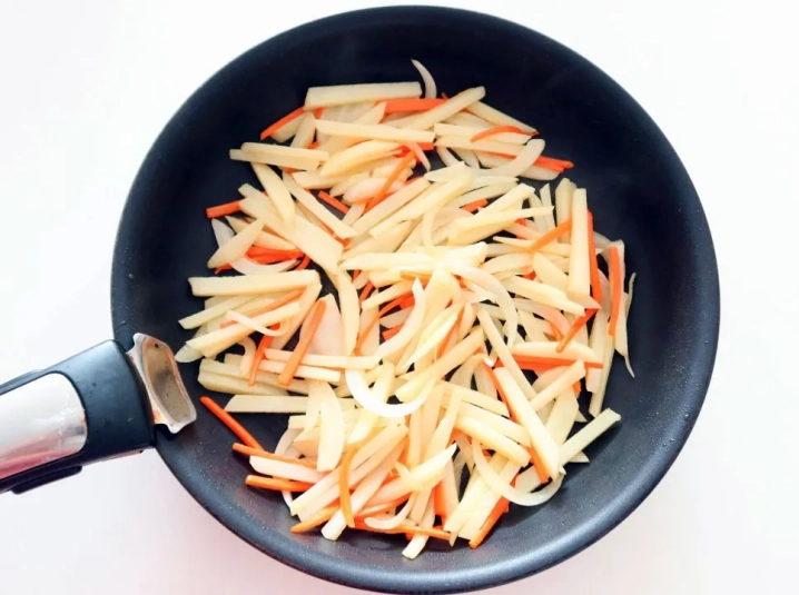 양파가 투명해지고 당근이 익으면 감자를 넣어 볶아주세요.