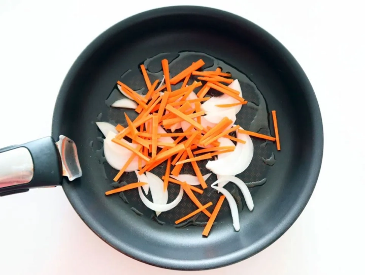 채썬 양파와 당근을 넣어 볶아주세요.