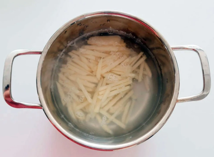 감자는 채를 썰어 끓는 물에 소금 약간을 더해