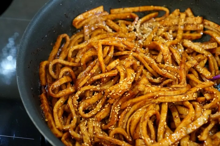 양념장을 더해 잘 배이도록 골고루 볶아주세요.