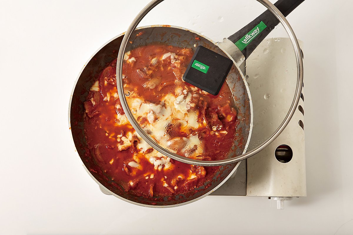 5분간 끓인 뒤 피자치즈를 얹어 녹여주면 완성~
