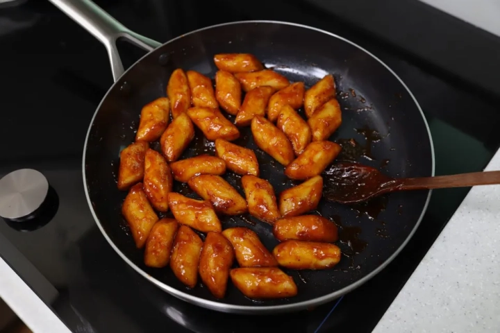 끓어오르는 소스에 튀긴 떡을 더해 골고루 버무려주면 완성~