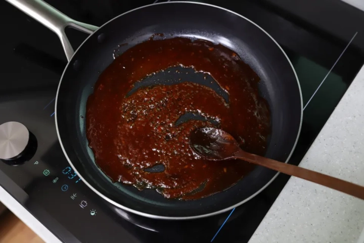 모든 소스재료들을 넣어 바글바글 끓여 소스를 만들어주세요.