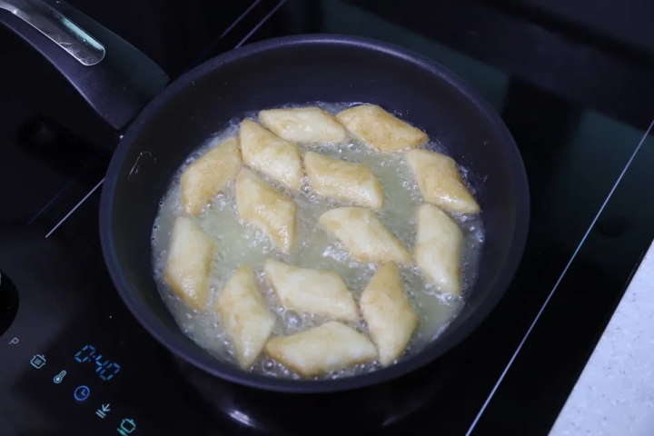 떡을 노릇노릇하게 튀겨주세요.