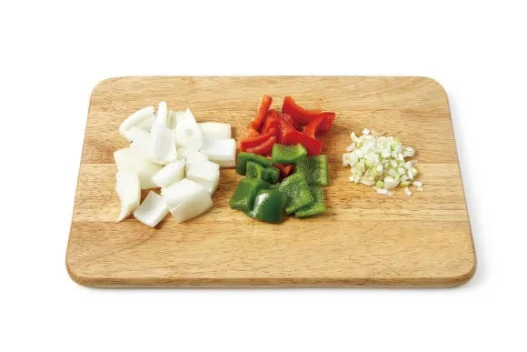 향이 올라오면 양파와 피망을 넣고 볶다가