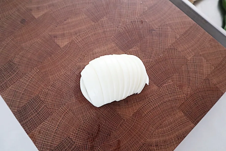 [재료]: 어묵 6장, 꽈리고추 10개, 양파 1/2개,
