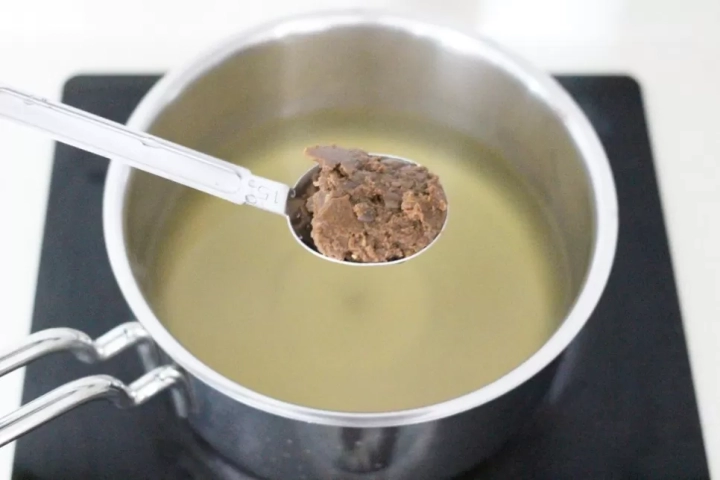 멸치 육수 1L에 된장 2큰술을 풀어주세요.