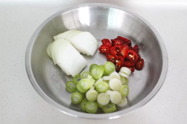 양파 1/4개, 고추 2개, 된장 2큰술, 고춧가루 1큰술,