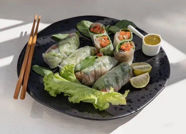 식재료를 다양한 요리로 먹는 것도 즐거운 다이어트 방법 중 하나라고 하는데요. 월남쌈이 이에 해당하는 요리 중 하나로 다양한 채소와 과일을 활용해 맛도 즐기면서 식단 조절도 할 수 있죠. 라이스페이퍼에 다양한 채소들을 한가득 넣어 먹으면 몇개만 먹어도 포만감이 크고 채소만으로 질린다면 방울토마토, 칵테일 새우, 슬라이스한 소고기 등을 넣어 색다르게 먹어도 좋다고 합니다. 또한 월남쌈을 먹게 되면 쌈을 싸는 속도와 먹는 속도가 느리기 때문에 과식을 피할 수 있다고 합니다. 단, 가급적이면 소스는 찍어 먹지 않는 것이 좋으며 라이스페이퍼 한 장에 17kcal로 많이 먹으면 칼로리가 높아지니 너무 많이 먹는 것은 좋지 않으며 한번에 라이스페이퍼 1/2장을 사용하는것도 좋은 방법이라고 합니다.