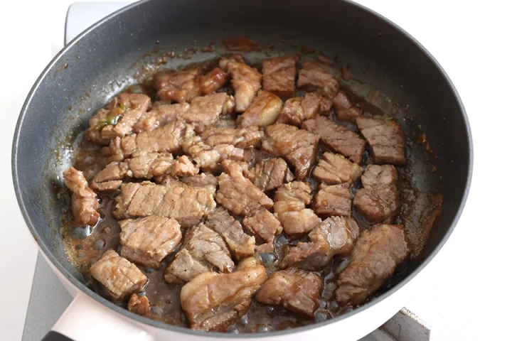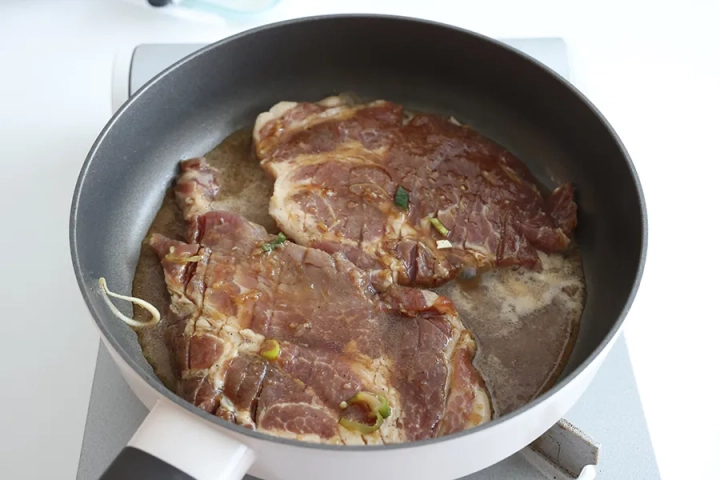 중약불에서 고기를 앞뒤로 속까지 익혀주세요.