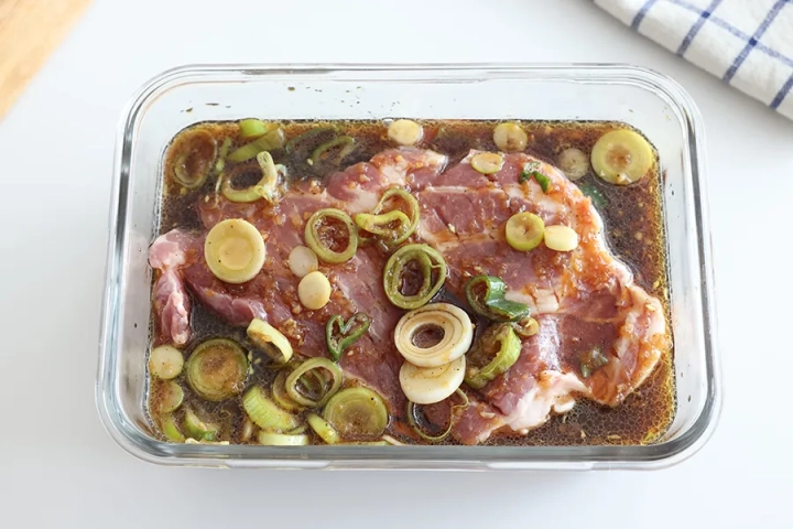 와인으로 촉촉하게 숙성한, 목살간장구이