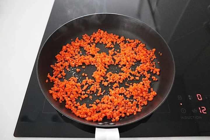 달군 팬에 기름을 두르고 당근을 넣고