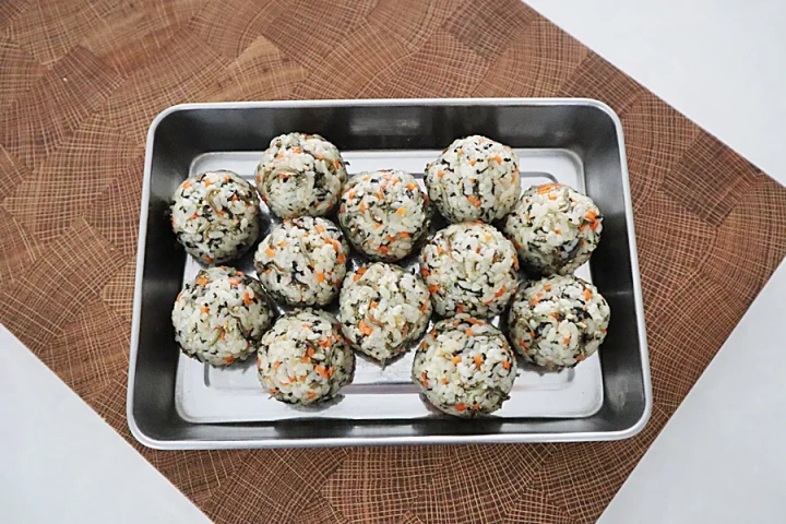 한 입 크기로 뭉쳐 동그랗게 모양을 잡아주면 완성~