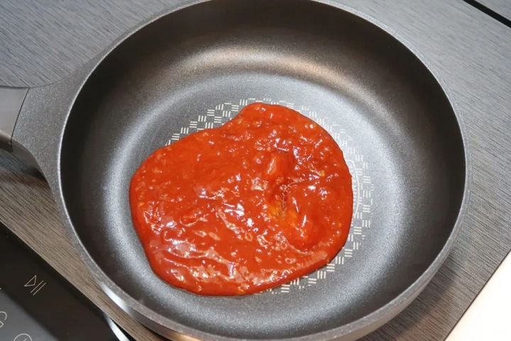 팬에 만들어둔 소스를 부어 중약불로 끓여주세요.